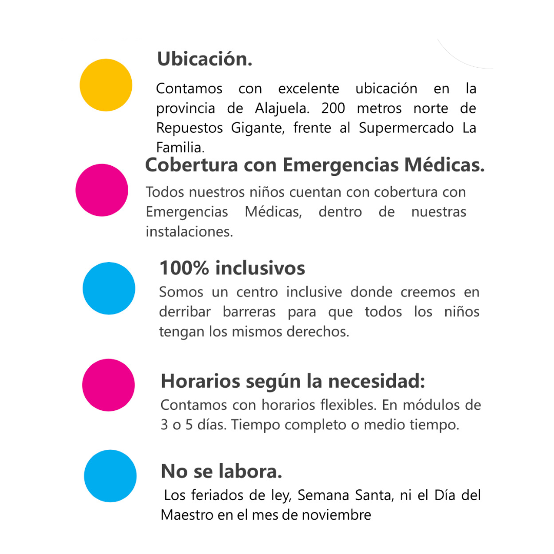 Nuestros niños reciben estimulación en las cuatro áreas del desarrollo, lecciones de inglés, clases de baile popular, clases de LESCO, lecciones de música y nuestro nuevo programa en emociones y valores. Somos un centro que cree y promueve la inclusión de personas con discapacidad.